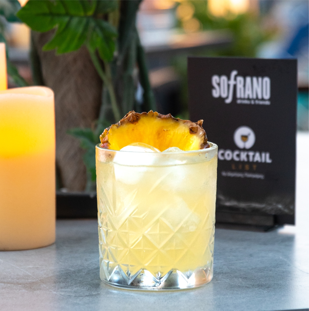 Καθώς ο ήλιος δύει, το Sofrano μεταμορφώνεται σε ένα ζωντανό café bar – cocktail bar, με εξειδίκευση σε κλασικά cocktails, signature δημιουργίες, δροσερά mocktails, αλλά και premium ποτά, φτιαγμένα από έμπειρους bartenders. Ο προσεγμένος φωτισμός και η ατμοσφαιρική μουσική δημιουργούν ένα σκηνικό που εναρμονίζεται με τη θάλασσα και την ενέργεια του καλοκαιριού.