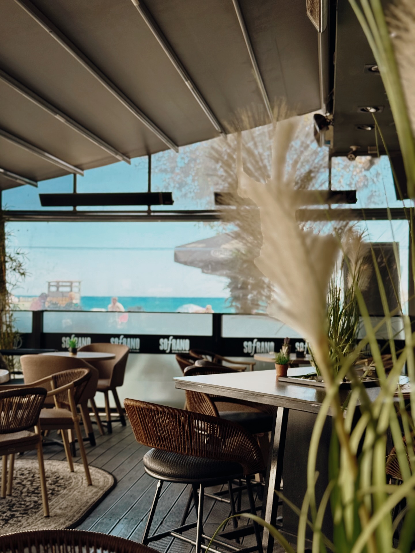 Το Sofrano All Day Bar στο πιο ζωντανό σημείο της Παραλίας Κατερίνης, ακριβώς δίπλα στο κύμα, προσφέρει την ιδανική εμπειρία χαλάρωσης και διασκέδασης, όλες τις ώρες της ημέρας. Ένας σύγχρονος και μοντέρνος χώρος, που συνδυάζει τη χαλαρή αίσθηση ενός beach bar με την κομψότητα ενός cocktail bar, δημιουργώντας ένα περιβάλλον που προσαρμόζεται αρμονικά τόσο στη μέρα όσο και στη νύχτα.
