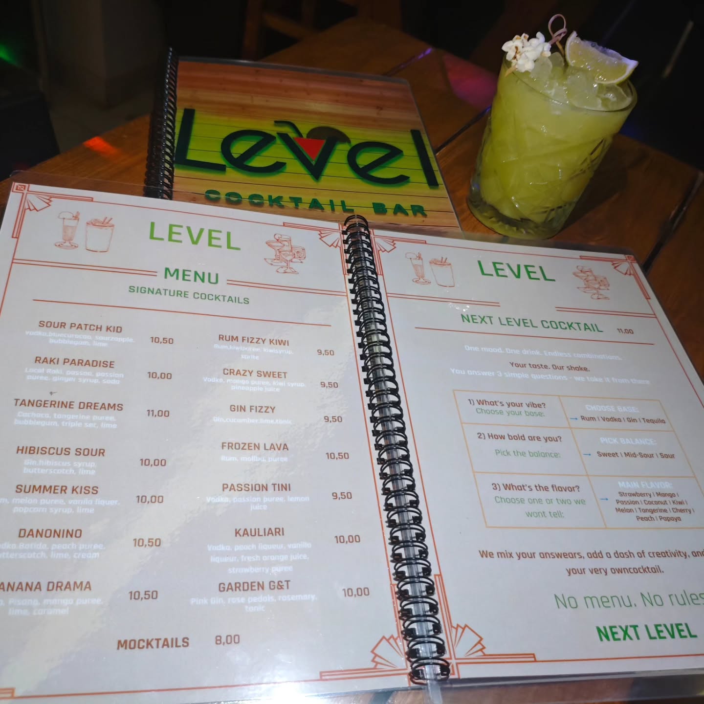 Το Level Café – Cocktail Bar στην Αγία Μαρίνα Χανίων αποτελεί έναν πολυχώρο που συνδυάζει καφέ, κοκτέιλ, ποτά και σνακ σε ένα άνετο και φιλόξενο περιβάλλον. Πρόκειται για έναν σύγχρονο χώρο καφέ–κοκτέιλ μπαρ, που παράλληλα λειτουργεί ως ναργιλέ καφέ (Professional Shisha), συνδυάζοντας την εμπειρία καπνίσματος με απολαυστικό καφέ και ευφάνταστα κοκτέιλ. Ο χώρος διακρίνεται για την κομψή αισθητική και την άνετη ατμόσφαιρα, ιδανική για χαλάρωση καθ’ όλη τη διάρκεια της ημέρας.