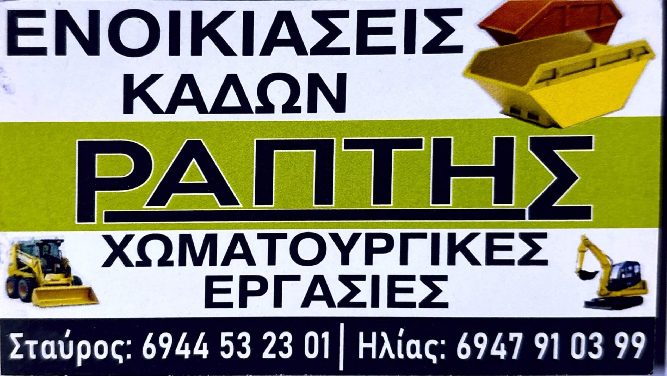 Η επιχείρηση Ράπτης Σταύρος, με έδρα τη Χούνη Αργολίδας, δραστηριοποιείται στον τομέα των χωματουργικών εργασιών και της ενοικίασης κάδων, προσφέροντας ολοκληρωμένες και αξιόπιστες λύσεις σε ιδιώτες και επαγγελματίες στην ευρύτερη περιοχή του Ναύπλιο. Με σταθερή παρουσία στον κλάδο και συνεχή εξέλιξη, η εταιρεία έχει καταφέρει να ανταποκρίνεται αποτελεσματικά στις απαιτήσεις σύγχρονων τεχνικών έργων, δίνοντας έμφαση στην ταχύτητα εξυπηρέτησης και στην ποιότητα των παρεχόμενων υπηρεσιών.