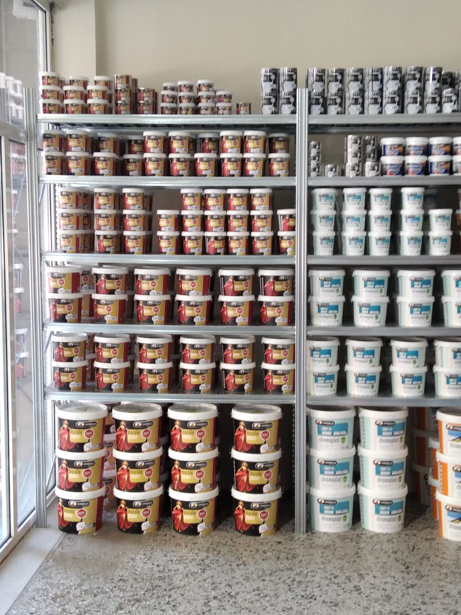 Στον χώρο του καταστήματος διατίθενται χρώματα και βερνίκια για κάθε επιφάνεια, κατάλληλα για εσωτερικές και εξωτερικές εφαρμογές, καθώς και προϊόντα από αξιόπιστους κατασκευαστές που εξασφαλίζουν μακροχρόνιο αποτέλεσμα και αισθητική. Το κατάστημα λειτουργεί επίσης ως χρωματοπωλείο, προσφέροντας λύσεις χρωματικής επιλογής σύμφωνα με τις ανάγκες κάθε πελάτη.