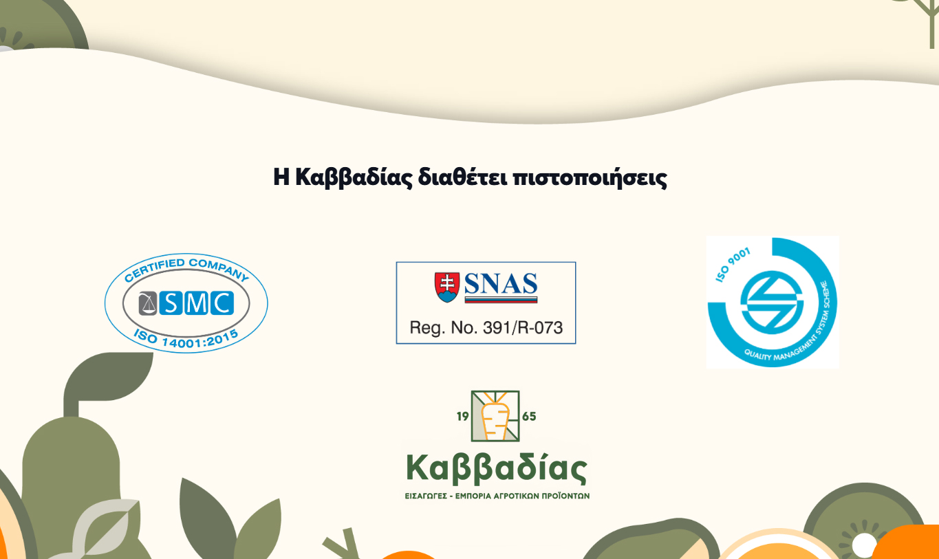 Η εταιρεία ΚΑΒΒΑΔΙΑΣ Α.Ε. αποτελεί μια από τις πιο ιστορικές και αξιόπιστες επιχειρήσεις στον χώρο του χονδρικού εμπορίου φρούτων και λαχανικών, με παρουσία που ξεπερνά τις έξι δεκαετίες. Με έδρα την Κεντρική Λαχαναγορά Αθηνών στο Ρέντη Β2-4-6, Α5-7-9 λειτουργεί ως κομβικό σημείο διακίνησης και ανεφοδιασμού αγροτικών προϊόντων, εξυπηρετώντας καθημερινά επαγγελματίες από κάθε γωνιά της Ελλάδας.