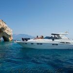 LUXURY CRUISES IN THE IONIAN ISLANDS it is our great pleasure to offer you our new SEALINE S48 M/Y ‘MONICA’, a premium lux yacht which gives you the chance to discover, swim and relax on the sea treasure of Zakynthos and the other Ionian islands. Get the chance to contact us if you feel like renting the speed motor yacht for daily luxury cruises. Skipper, co-skipper, fuel and provisions are included, together with hostess and executive cook if requested. It is also available for more days rental, for those who wish to enjoy more of the unique paradise beaches and the islands of the Ionian Sea, under luxurious top yacht services.
