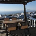 Διαθέτει δωμάτια με βασικό εξοπλισμό και μπαλκόνι με θέα στη θάλασσα και στο λιμάνι. Ο κήπος και οι βεράντες/μπαλκόνια των δωματίων προσφέρουν θέα στο χωριό, στο νησί της Ίου, στο λιμάνι Κόρφος και στην μαγευτική Καλντέρα.