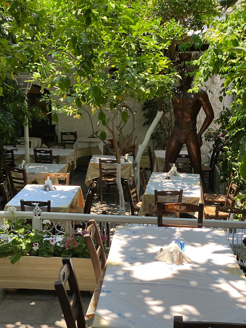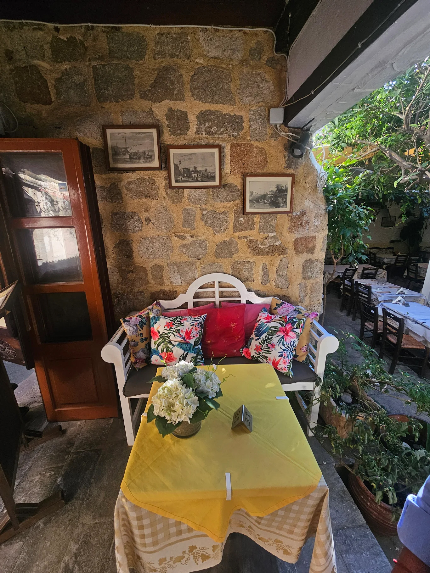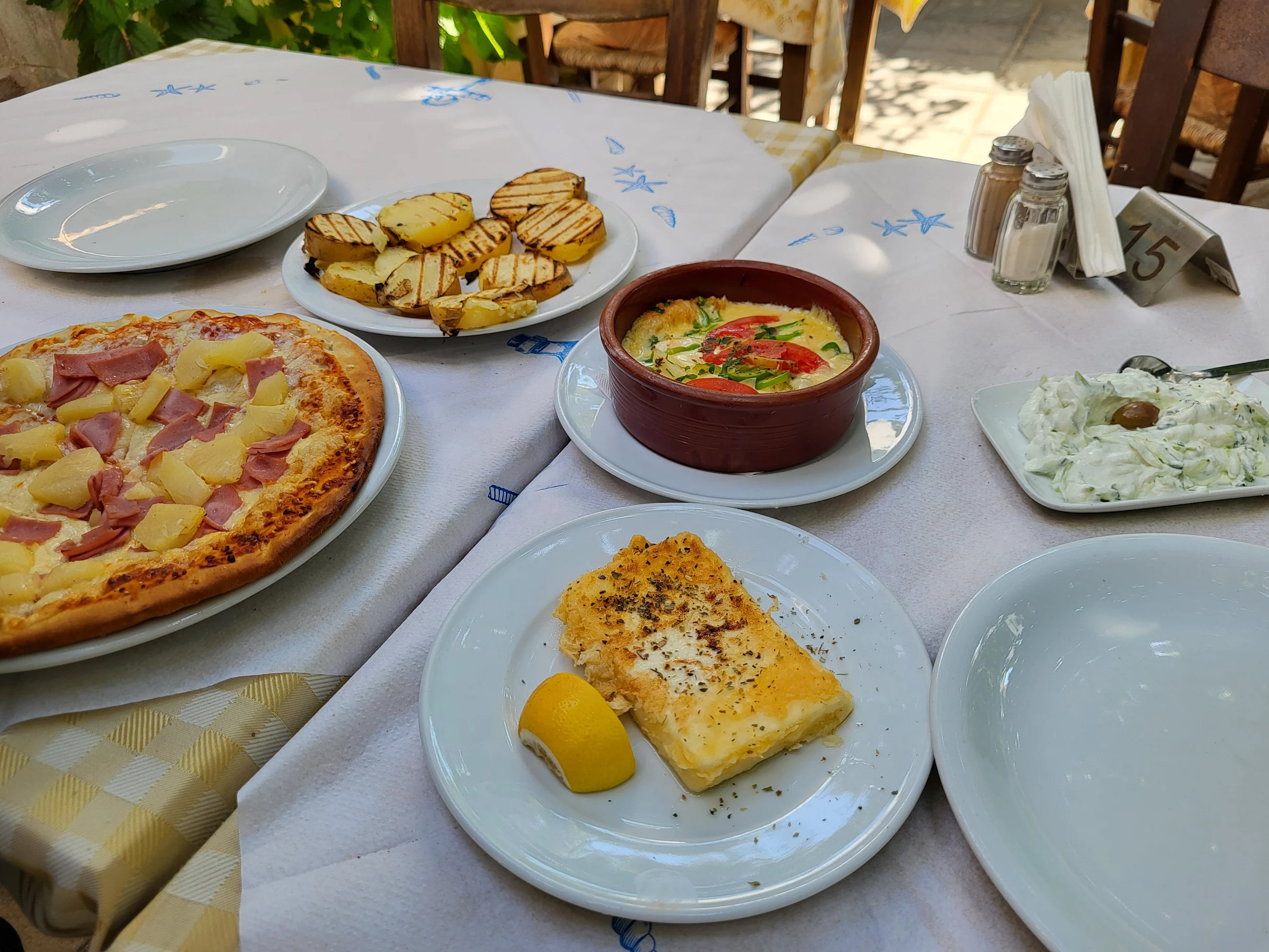 Η εξυπηρέτηση είναι ζεστή, επαγγελματική και πολύγλωσση, καθώς το προσωπικό επικοινωνεί άνετα στα ελληνικά, αγγλικά και γερμανικά, προσφέροντας προτάσεις και καθοδήγηση για την επιλογή φαγητού ή κρασιού από την τοπική λίστα με ετικέτες που κουβαλούν γεύσεις και ιστορία του νησιού.