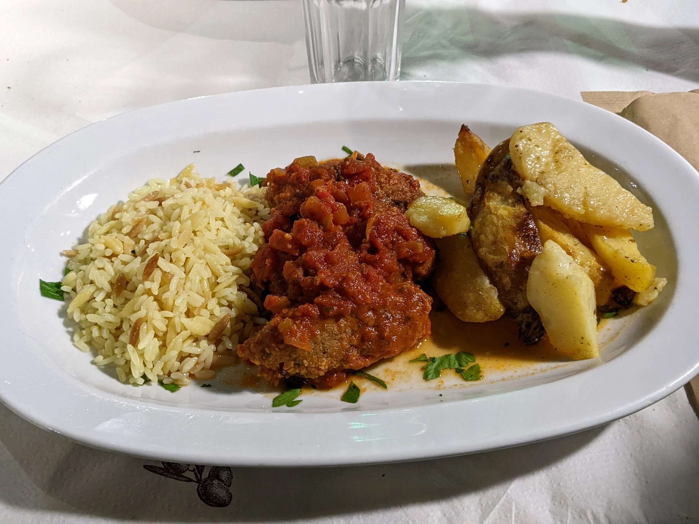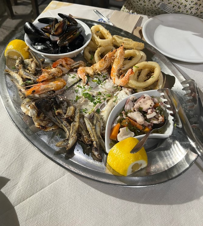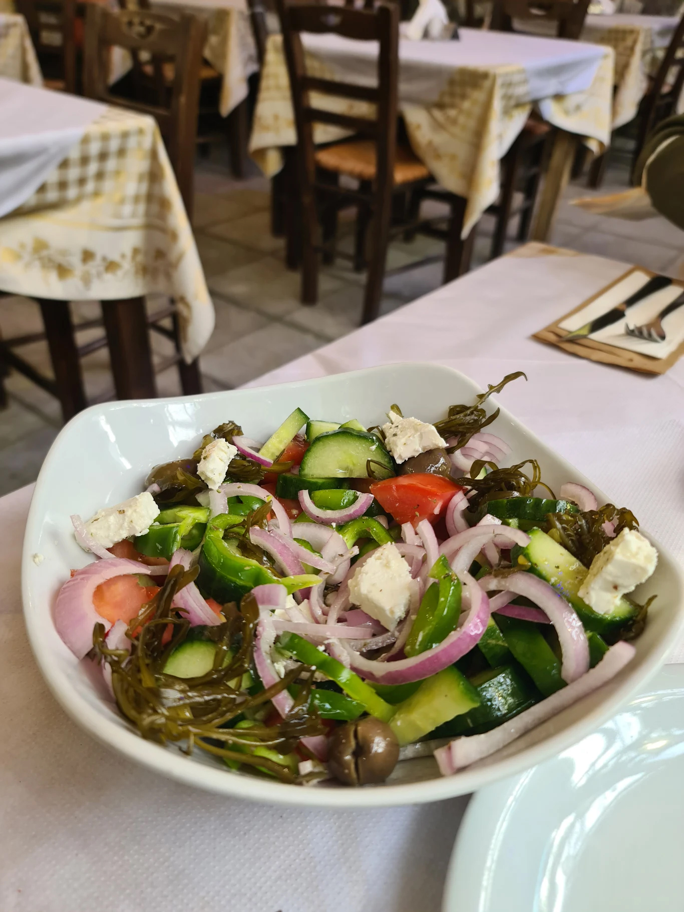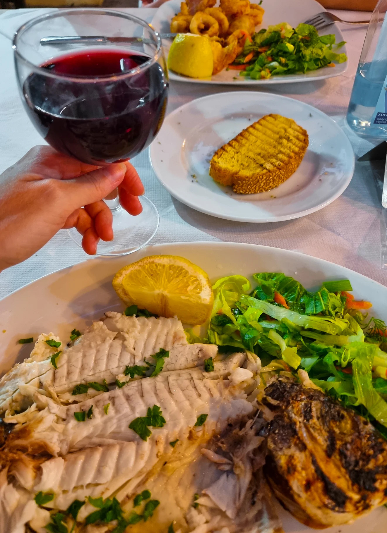 Η εξυπηρέτηση είναι ζεστή, επαγγελματική και πολύγλωσση, καθώς το προσωπικό επικοινωνεί άνετα στα ελληνικά, αγγλικά και γερμανικά, προσφέροντας προτάσεις και καθοδήγηση για την επιλογή φαγητού ή κρασιού από την τοπική λίστα με ετικέτες που κουβαλούν γεύσεις και ιστορία του νησιού.