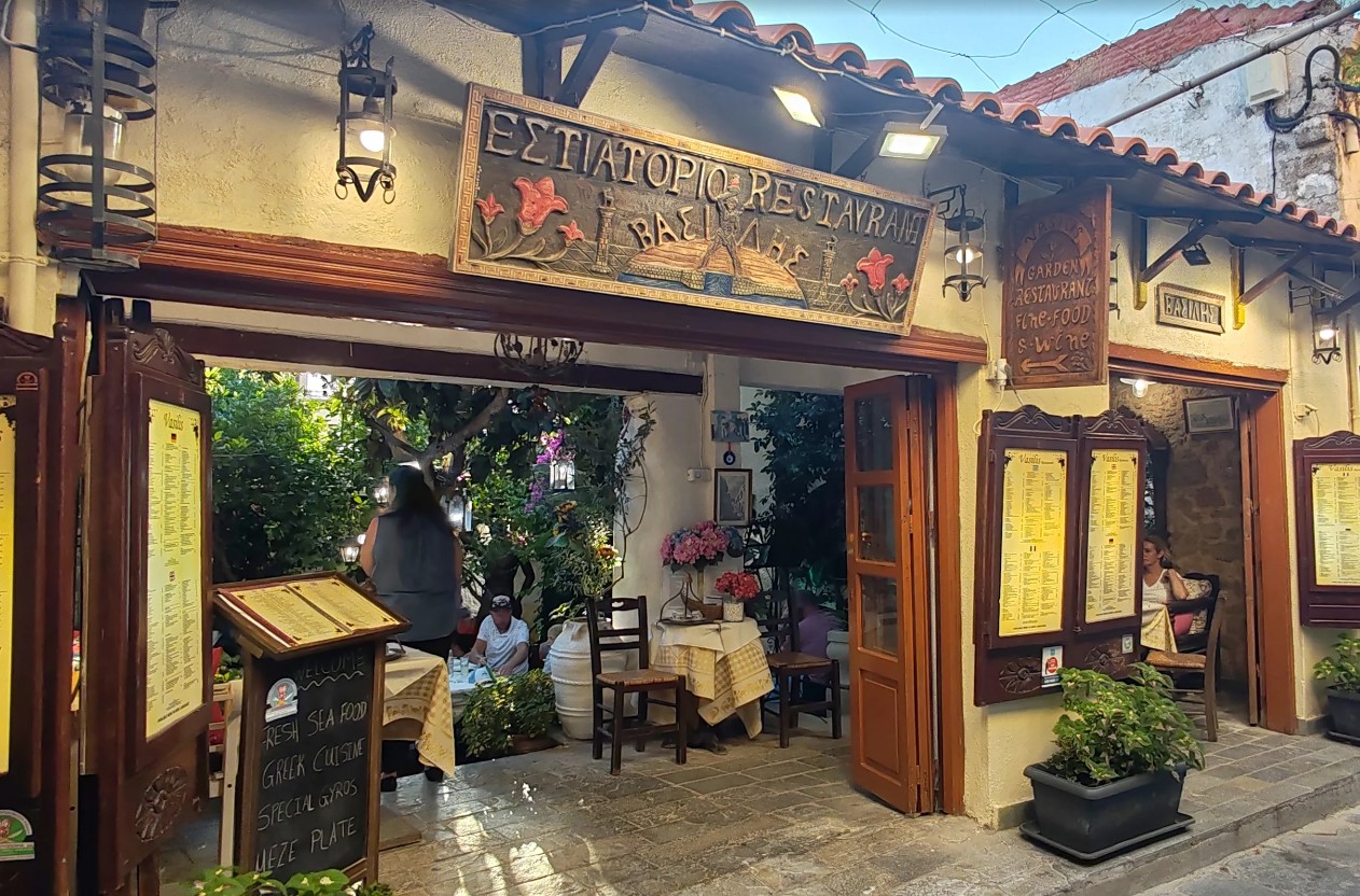 Το εστιατόριο «Βασίλης» βρίσκεται στην καρδιά της Παλιάς Πόλης της Ρόδου, σε ένα ήσυχο σημείο μακριά από τη φασαρία, προσφέροντας μια αυθεντική εμπειρία ελληνικής φιλοξενίας σε ένα παραδοσιακό περιβάλλον. Η μεγάλη, δροσερή αυλή του, διακοσμημένη με ελιές, λεμονιές, αμπέλια και ένα μικρό σιντριβάνι, δημιουργεί την ιδανική ατμόσφαιρα για να απολαύσει κανείς το φαγητό του με ηρεμία και χαλάρωση, συνοδεία απαλής ελληνικής μουσικής.