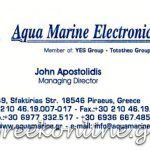 Η εταιρεία AQUA MARINE ELECTRONICS με έδρα τον Πειραιά, λειτουργεί από το 1992 σε ένα ευρύ φάσμα δραστηριοτήτων όπως προμήθεια, εγκατάσταση και εξυπηρέτηση θαλάσσιου ηλεκτρονικού εξοπλισμού, για εμπορικά σκάφη και σκάφη αναψυχής.