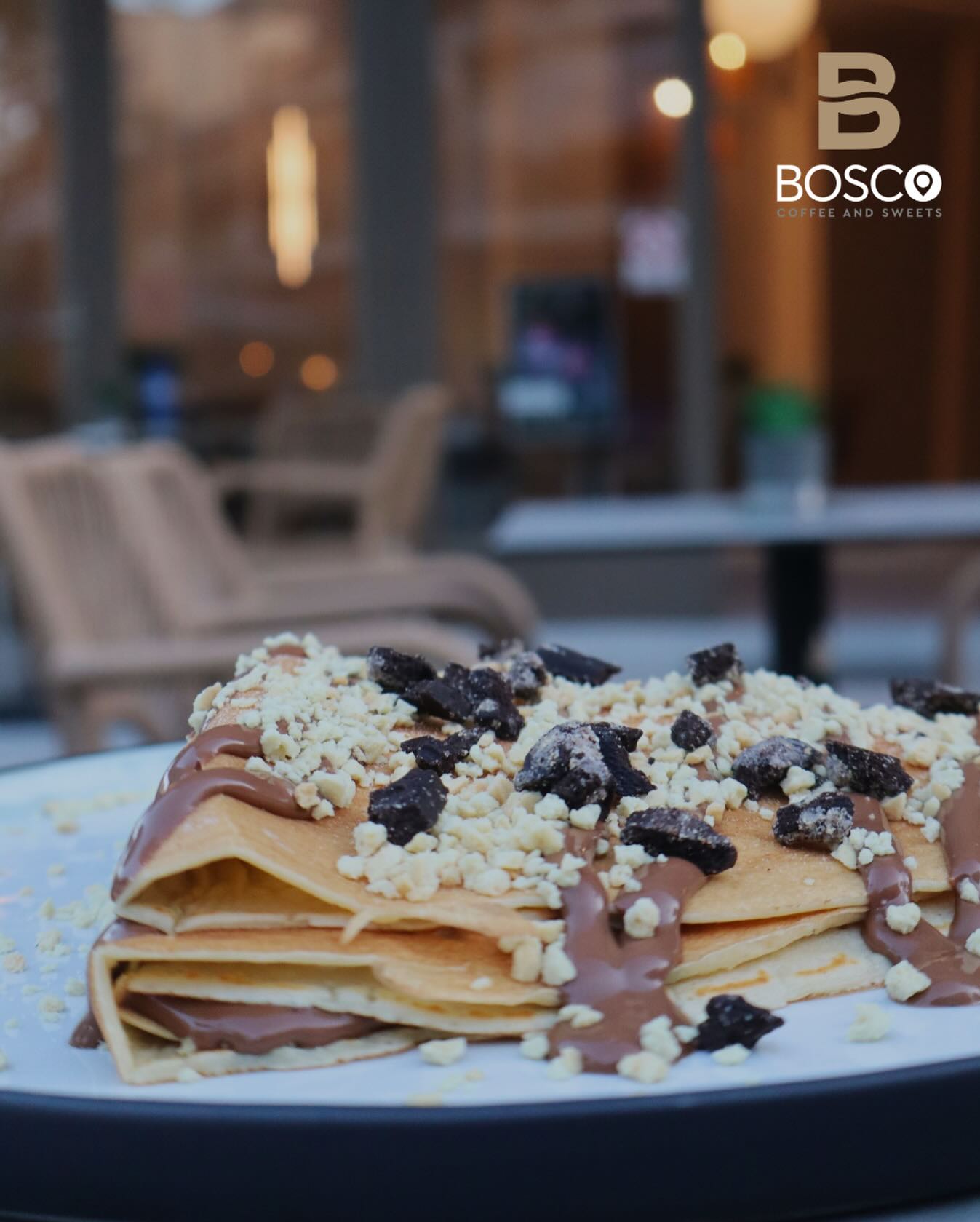 Η χειροποίητη πίτσα, φτιαγμένη με φρέσκα υλικά και ζυμάρι ημέρας, συμπληρώνει ιδανικά την all day εμπειρία του Bosco, όπως και οι ακαταμάχητες αλμυρές κρέπες που συνδυάζουν γεύση και δημιουργικότητα. Το μενού εμπλουτίζεται από cocktails, ενώ τα signature drinks αποτελούν σημείο αναφοράς στην περιοχή και δροσερά ροφήματα που ανεβάζουν τη διάθεση και προσφέρουν μια ιδιαίτερη νότα σε κάθε επίσκεψη.