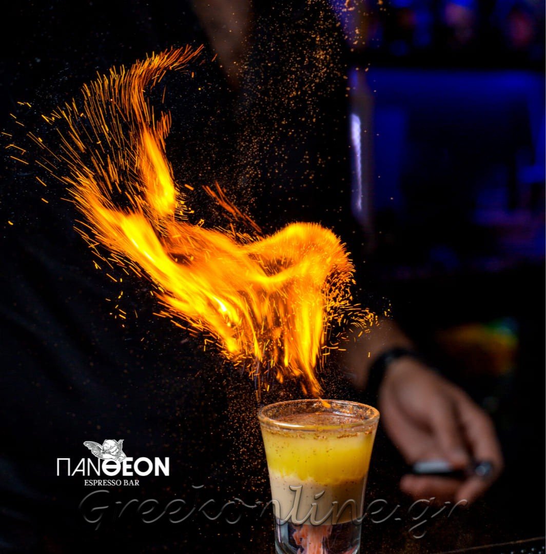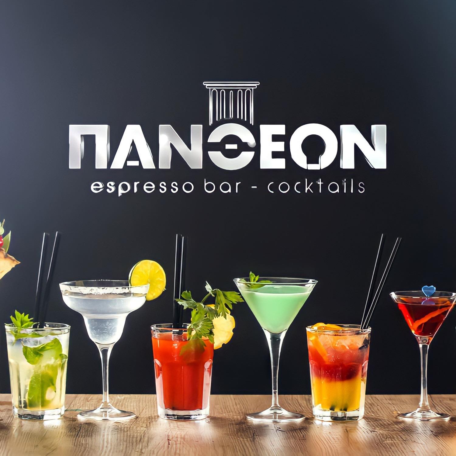 Το Pantheon λειτουργεί ως καφετέρια, αναψυκτήριο και café bar, προσφέροντας υψηλής ποιότητας espresso, αρωματικούς καφέδες, φρέσκους χυμούς και δροσερά ροφήματα, ενώ οι επιλογές σε ποτά, μπύρες, κρασί και cocktails ικανοποιούν και τους πιο απαιτητικούς επισκέπτες. Η ατμόσφαιρα συνδυάζει τον μοντέρνο χαρακτήρα ενός espresso bar με την ενέργεια ενός wine και cocktail bar, δημιουργώντας το ιδανικό σημείο συνάντησης για κάθε ώρα της ημέρας.