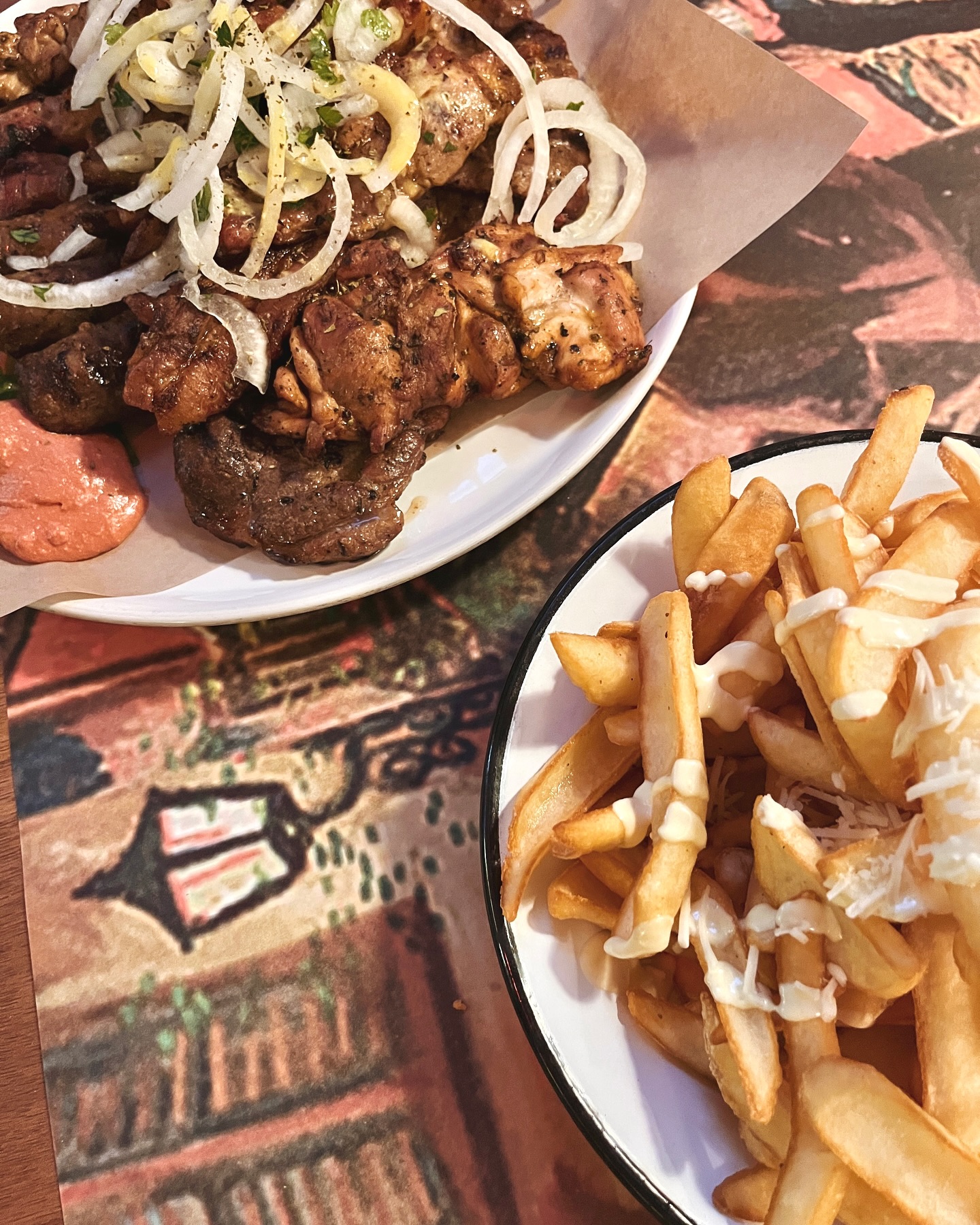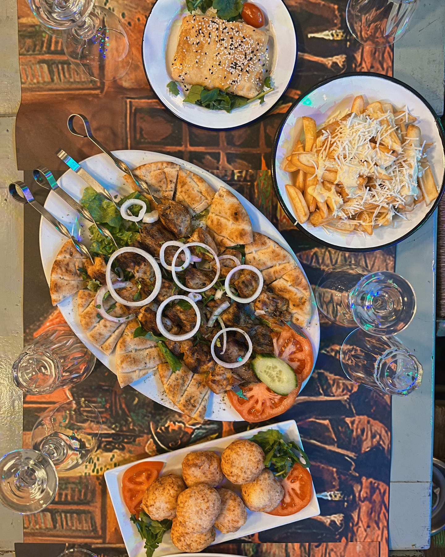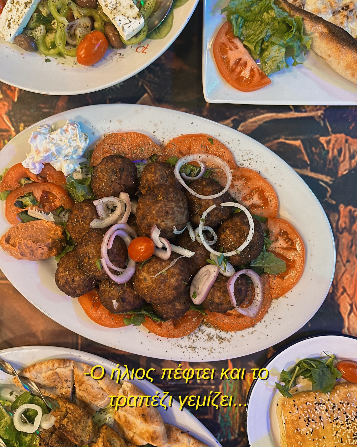 Η κουζίνα βασίζεται σε επιλεγμένα υλικά και αυθεντικές συνταγές. Τα πιάτα είναι χορταστικά, γεμάτα γεύση και φρεσκάδα, με μερίδες που ξεχωρίζουν τόσο σε ποσότητα όσο και σε ποιότητα. Οι προτάσεις του μενού περιλαμβάνουν λαχταριστούς ουζομεζέδες, ζουμερά κρεατικά, σπιτικές σαλάτες και πιάτα-έκπληξη όπως κασεροκροκέτες, τηγανητά κολοκυθάκια, σουβλάκια χοιρινά, ποικιλίες κρεατικών και η φέτα με μέλι και σουσάμι. Το τζατζίκι και τα υπόλοιπα συνοδευτικά συμβάλλουν στην απόλυτη μεζεδοκατάσταση.
