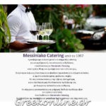 Από το 1997 το ” Μεσσηνιακό Catering” προσφέρει εκλεκτά μενού και υπηρεσίες catering για επαγγελματικές και κοινωνικές εκδηλώσεις. Οι έμπειροι σεφ είναι έτοιμοι να φτιάξουν πρωτότυπα και εξαιρετικά πιάτα, η άριστα εκπαιδευμένη ομάδα του σέρβις θα σας εντυπωσιάσει με την άψογη εξυπηρέτηση και τον εξοπλισμό και θα πλαισιώσει τη δεξίωση σας με διακριτική πολυτέλεια και αισθητική.