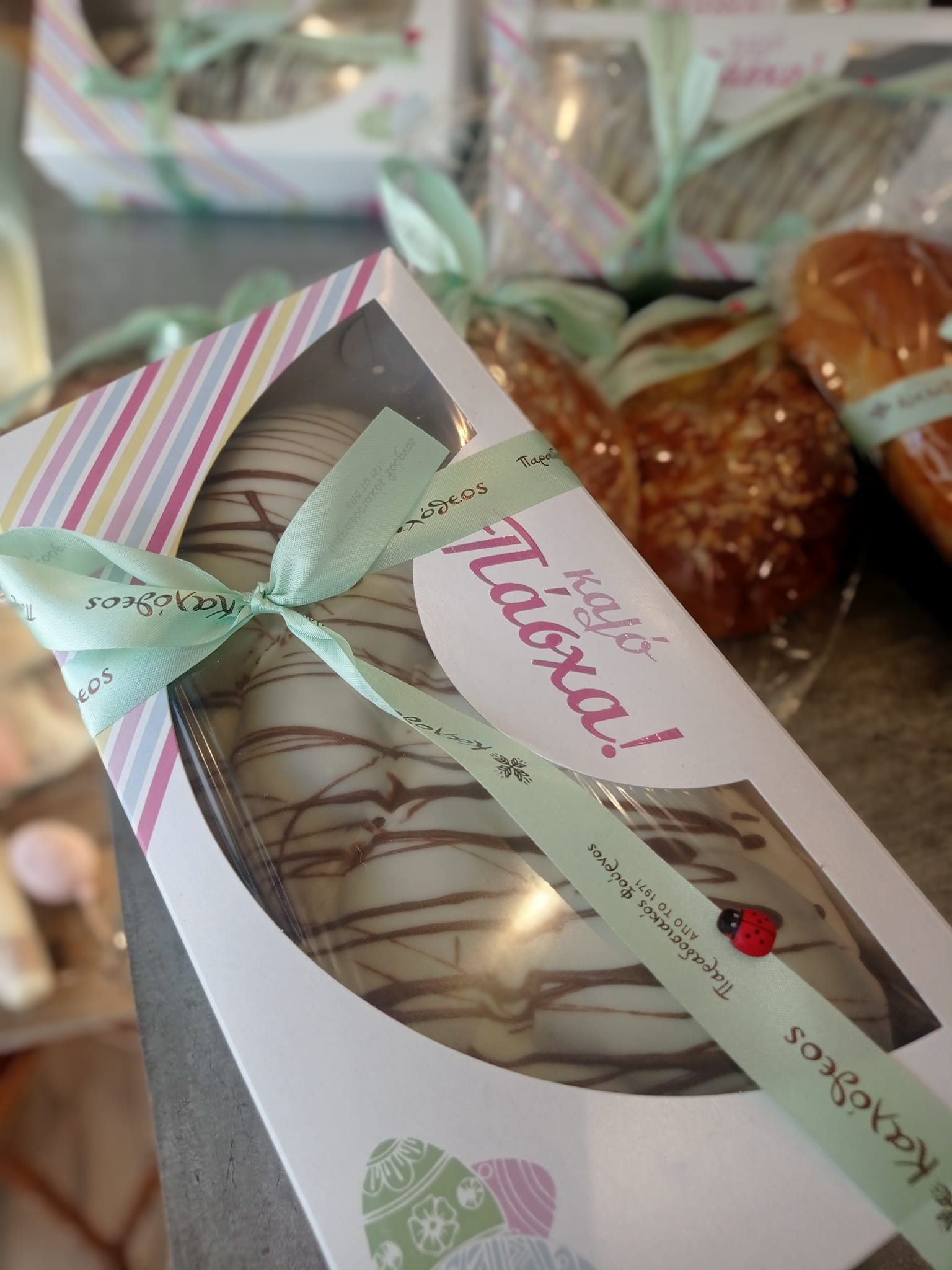 Ο φούρνος διαθέτει επίσης γλυκές δημιουργίες, όπως χειροποίητη φανουρόπιτα, μελομακάρονα, πάστα φλώρα, μηλόπιτα, cake pops, μπισκοτάκια κανέλας και χειροποίητα πτι φουρ, καλύπτοντας κάθε γλυκιά προτίμηση. Παρέχονται ακόμη προϊόντα αρτοκλασίας για θρησκευτικές και οικογενειακές ανάγκες, με την ίδια προσοχή στην ποιότητα και την παράδοση.