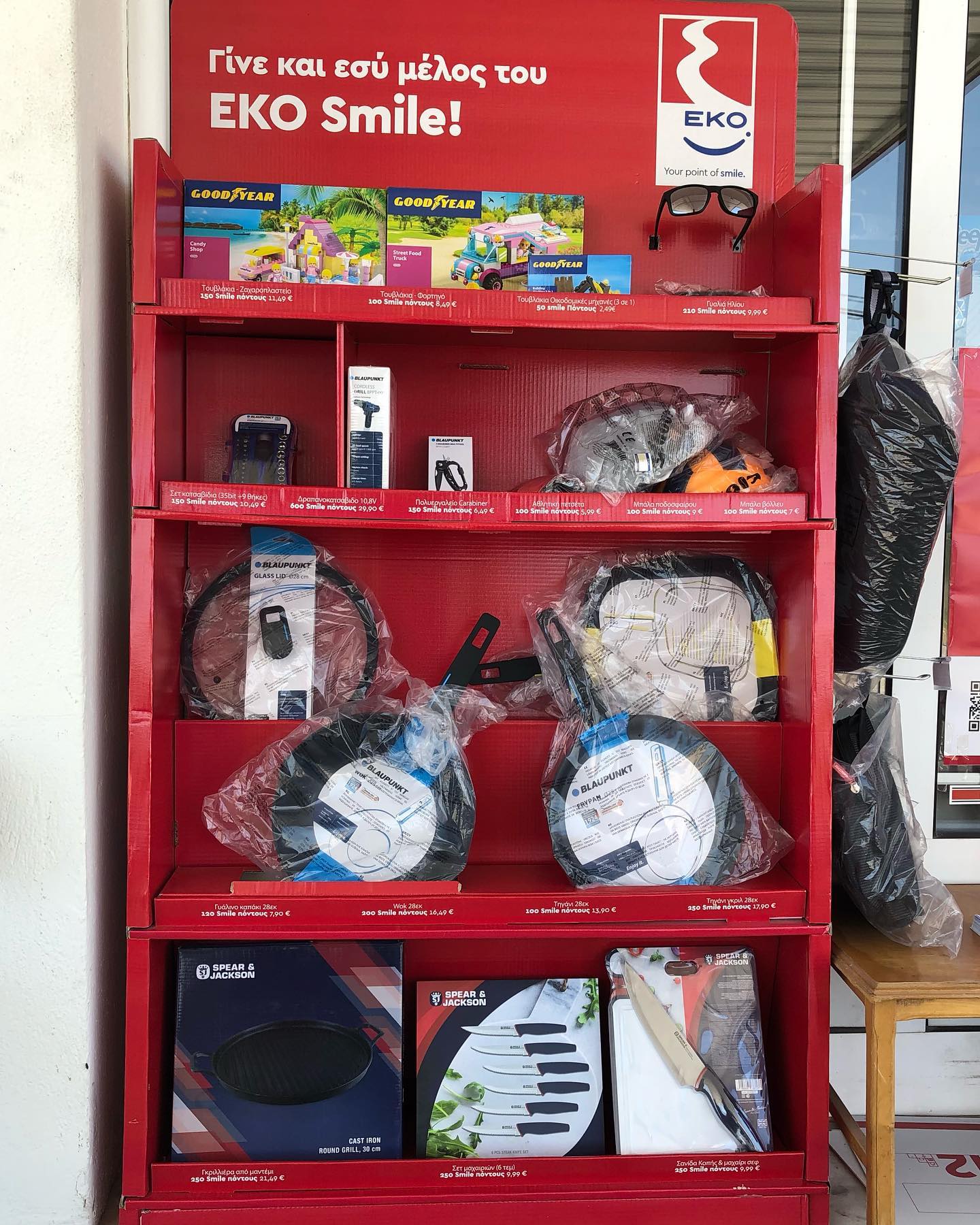 Στον χώρο του πρατηρίου υπάρχει επίσης πλούσια γκάμα σε αξεσουάρ αυτοκινήτων και δίκυκλων, όπως πατάκια, υαλοκαθαριστήρες, πλατοκαθίσματα, προϊόντα καθαρισμού και περιποίησης, φίλτρα λαδιού, μπαταρίες και αντιολισθητικές αλυσίδες.
