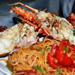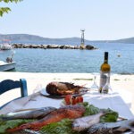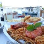 Δοκιμάστε εξαιρετικές σπεσιαλιτέ όπως την αστακομακαρονάδα με θέα τα γαλαζοπράσινα νερά του Αιγαίου.
