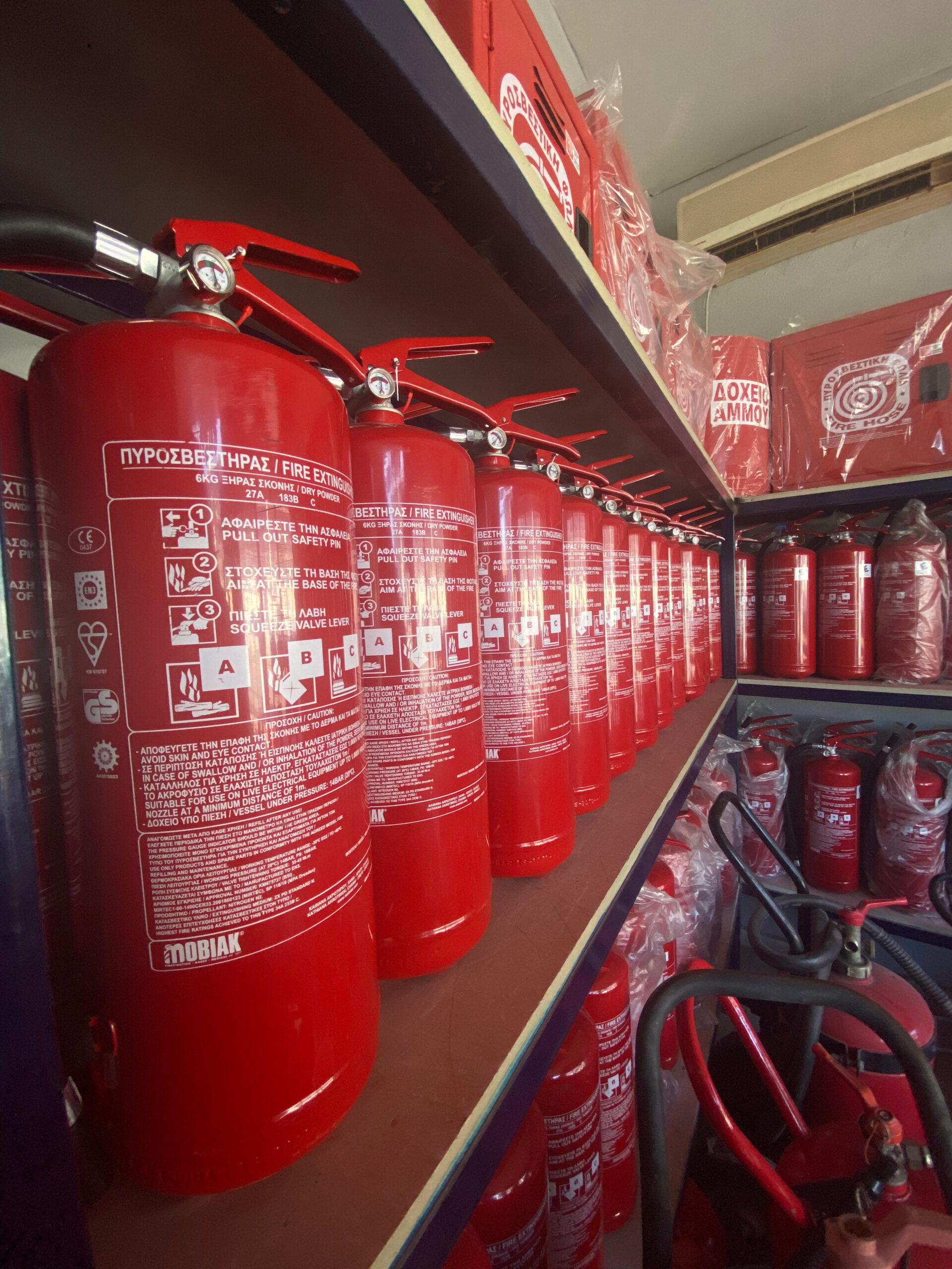 - Φορητοί και τροχήλατοι πυροσβεστήρες ξηράς σκόνης και αφρού.