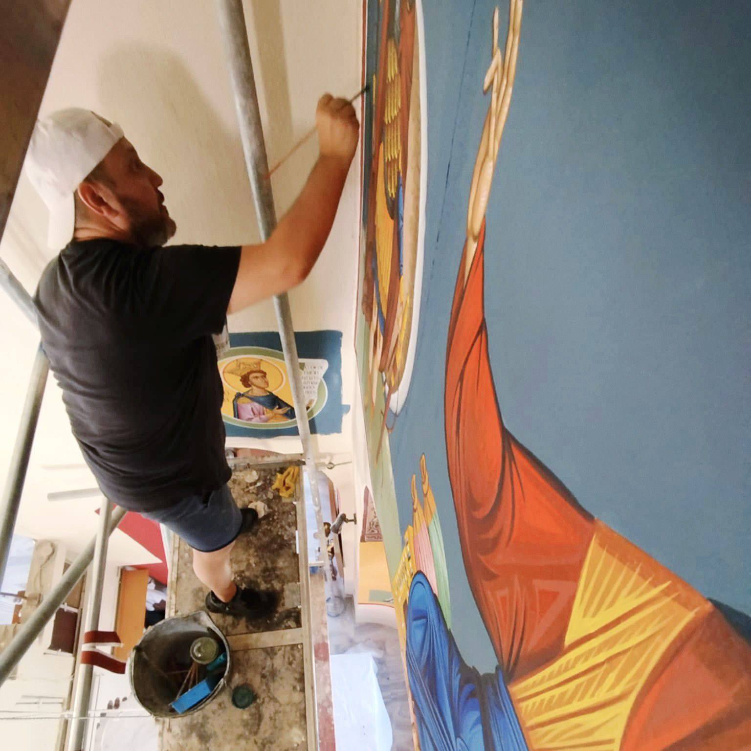 Παράλληλα, δημιουργούνται νέες αγιογραφίες σε ξύλο, κεραμικά, πέτρα ή τσιμεντοκονίαμα, με δυνατότητα προσαρμογής σε κάθε επιθυμητή διάσταση και τεχνοτροπία. Η τεχνητή παλαίωση εφαρμόζεται σε περιπτώσεις που απαιτείται αισθητική εναρμόνιση με το περιβάλλον ή το ύφος του χώρου. Σημαντικό μέρος της δραστηριότητας αποτελεί και η ιστόρηση ιερών ναών, με σεβασμό στην ορθόδοξη παράδοση και την αγιολογική ακρίβεια, μέσω προσχεδίων και πλήρους μελέτης.
