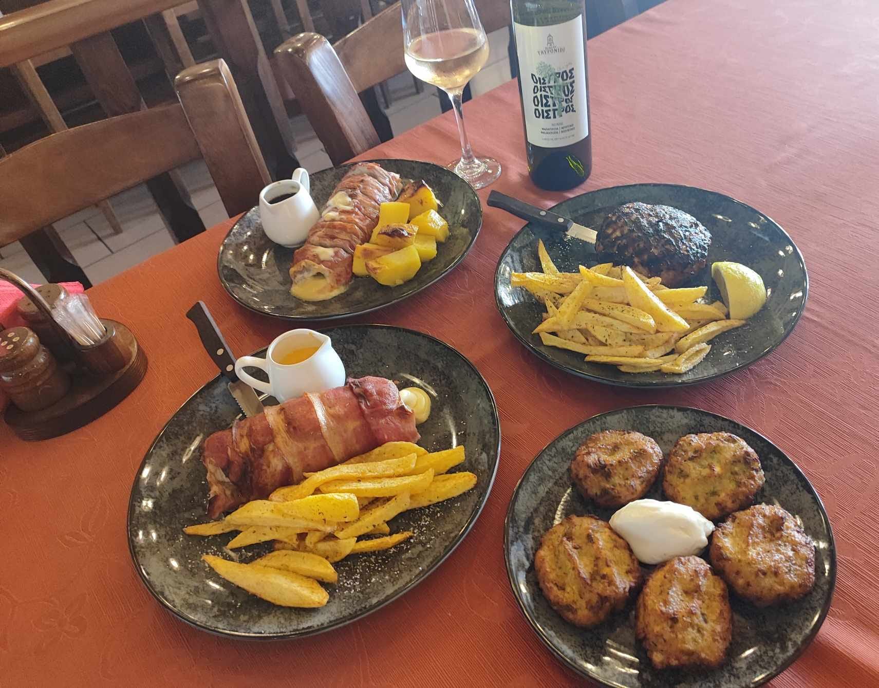 Η κουζίνα του δίνει έμφαση στην αυθεντική ελληνική και παραδοσιακή γαστρονομία, με πλούσια ποικιλία από κρεατικά και εκλεκτά κρέατα, προσεκτικά επιλεγμένα και άριστα ψημένα. Στο μενού περιλαμβάνονται ψητά της ώρας, καλομαγειρεμένα πιάτα, ψητά φούρνου και χορταστικές ποικιλίες κρεατικών που ικανοποιούν κάθε προτίμηση. Ιδιαίτερη θέση κατέχουν οι ουζομεζέδες και οι τσιπουρομεζέδες, ιδανικοί για παρέες που αναζητούν γνήσιες ελληνικές γεύσεις συνοδεία καλού ποτού.