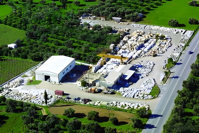 Ιδιαίτερη θέση στη δραστηριότητά της κατέχει το ιδιόκτητο λατομείο, από το οποίο εξορύσσεται αποκλειστικά το γκρίζο μάρμαρο Γορτύνης, μοναδικής ποιότητας και σπάνιας απόχρωσης. Το υλικό παράγεται σε μεγάλους όγκους, επιτρέποντας την υλοποίηση απαιτητικών έργων. Πρόκειται για ιδιαίτερα συμπαγές και ανθεκτικό πέτρωμα, το οποίο δεν απαιτεί ενισχυτικές επεξεργασίες, καθώς χαρακτηρίζεται από φυσική αντοχή και σταθερότητα.